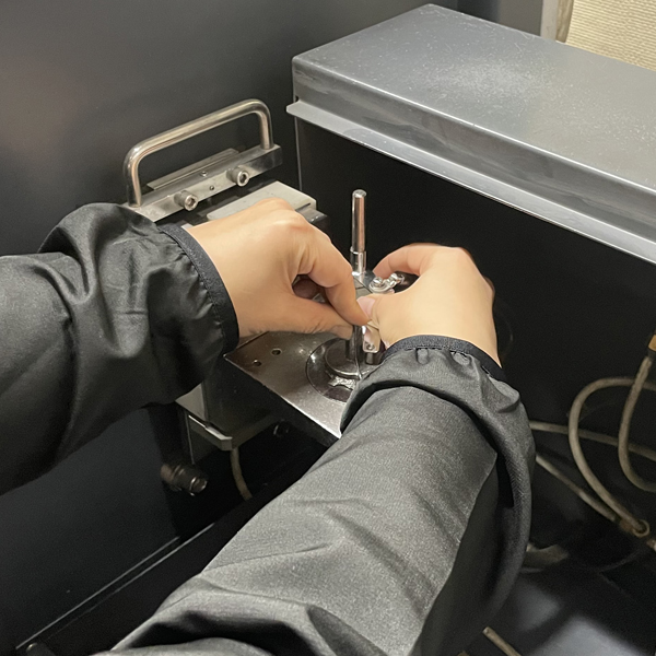 We measure the composition of molten metal dissolved in the high-frequency furnace using a CE meter and vacuum-type kant recorder at the furnace front, managing composition control.